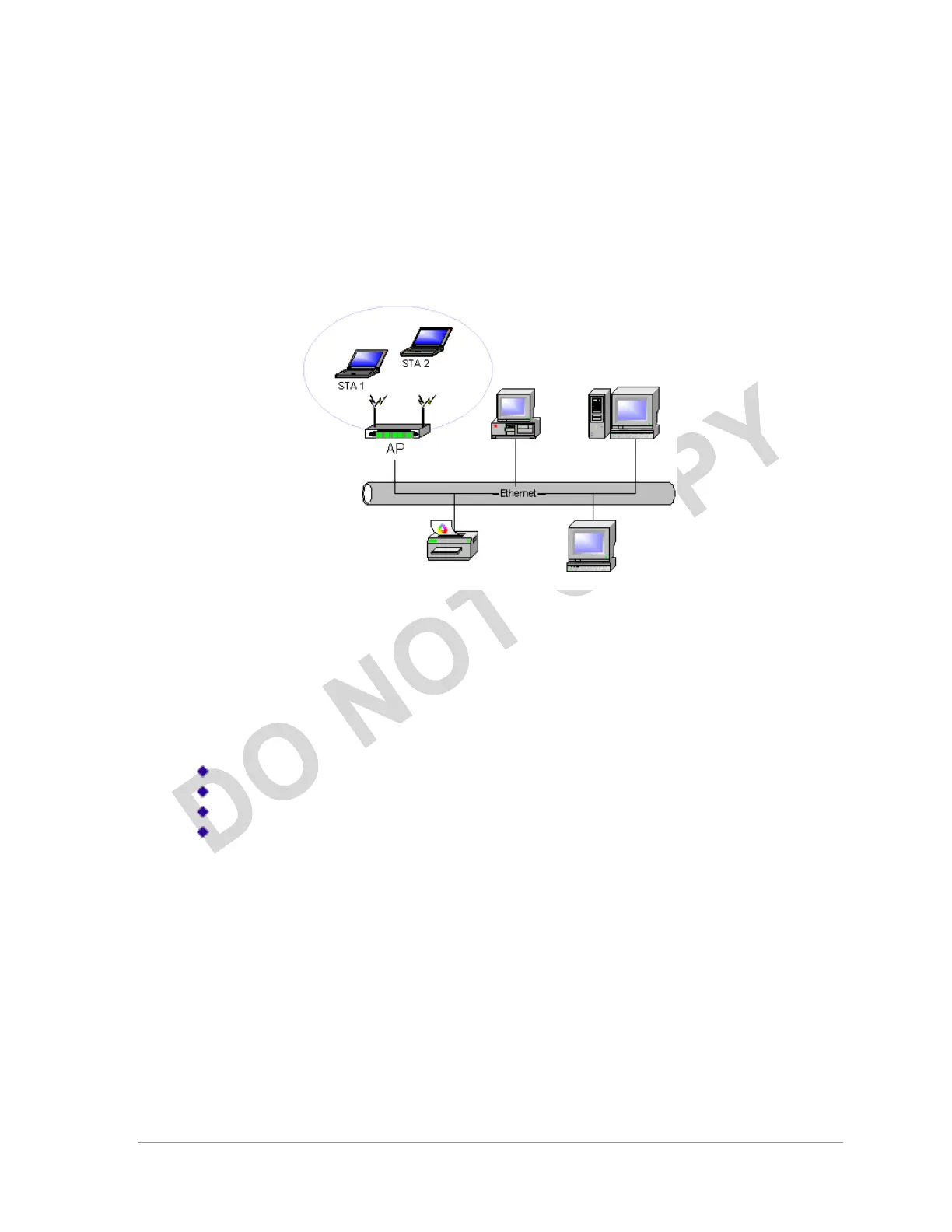In infrastructure (access point (AP)) mode, the wireless network adapter participates in a