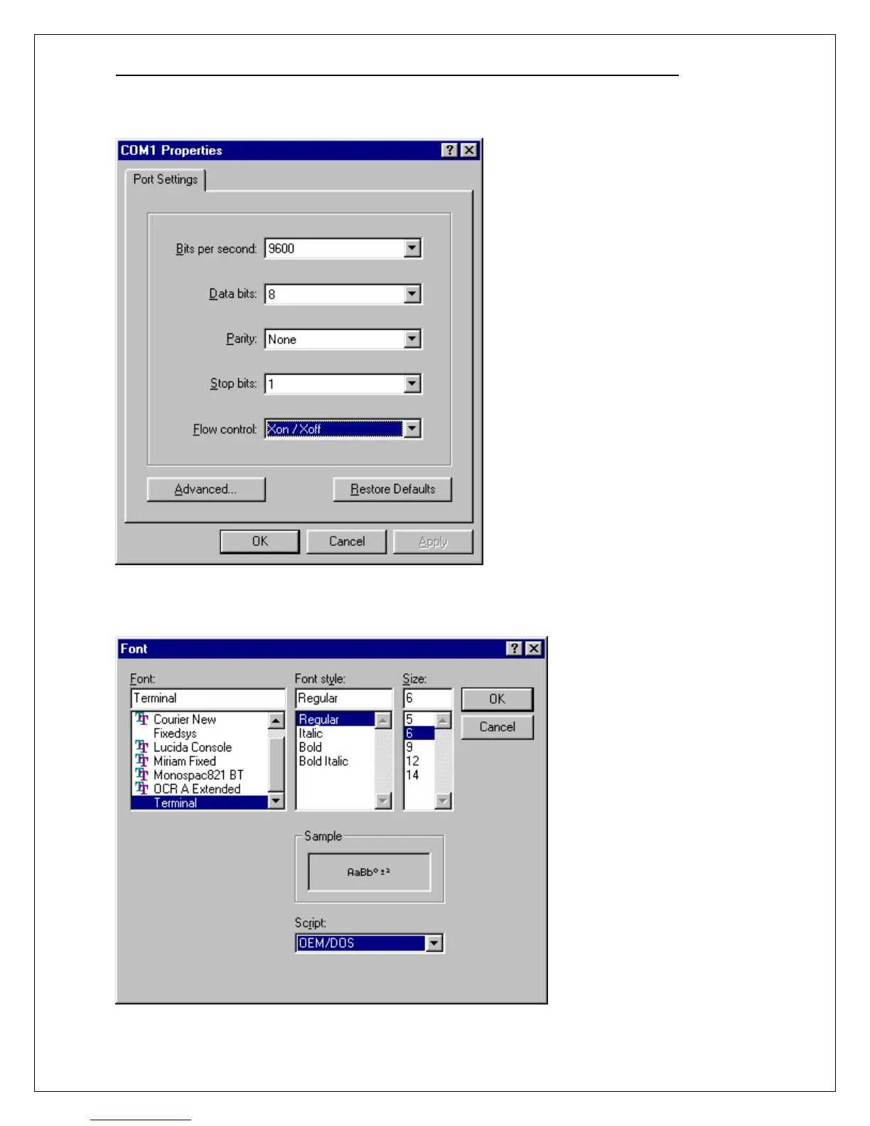 When the COM1 Properties dialog box appears, configure the Port Settings as shown below and click