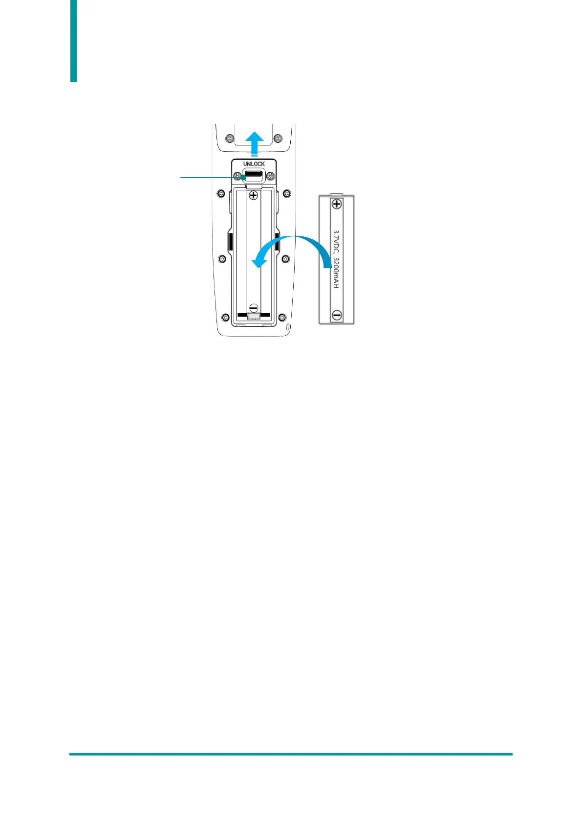 1) Push up the battery lock on the back of the product to the UNLOCK position.