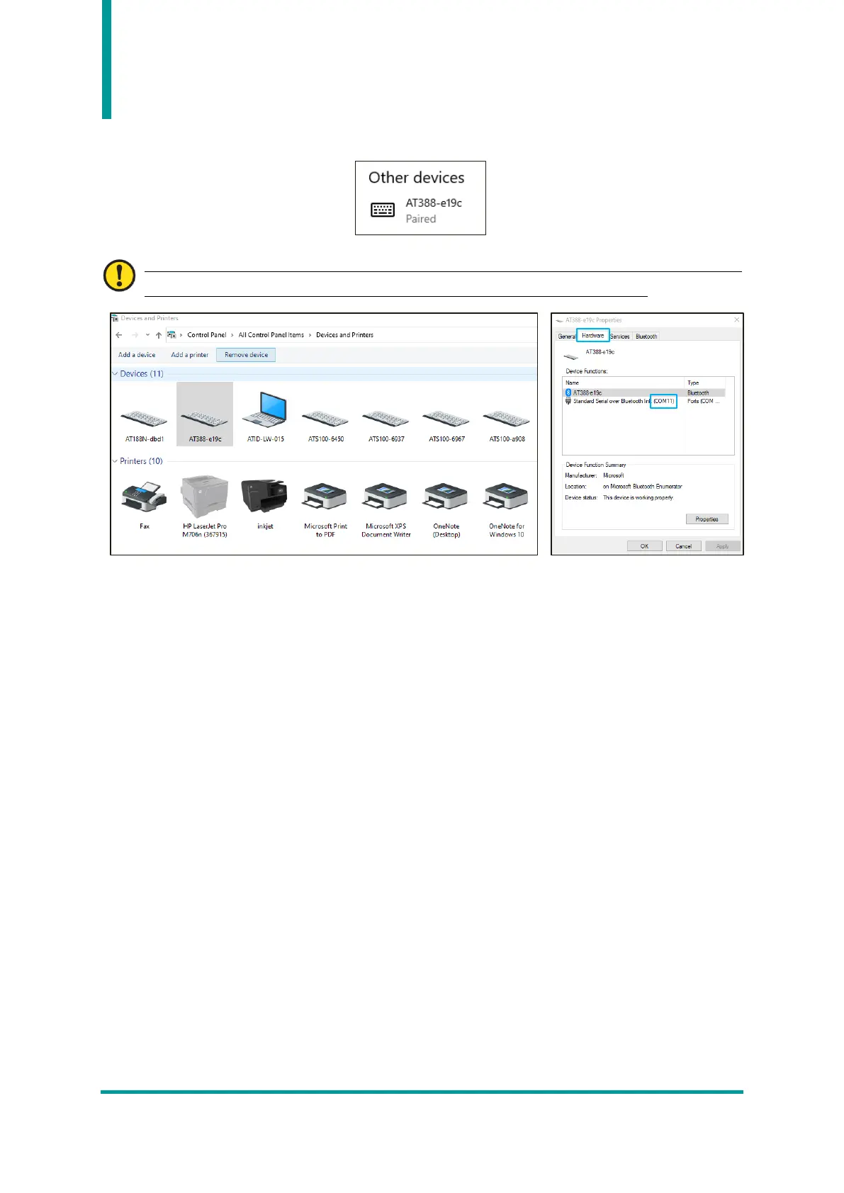 The COM Port information assigned to the device can be checked in the ‘Hardware’ tab of the