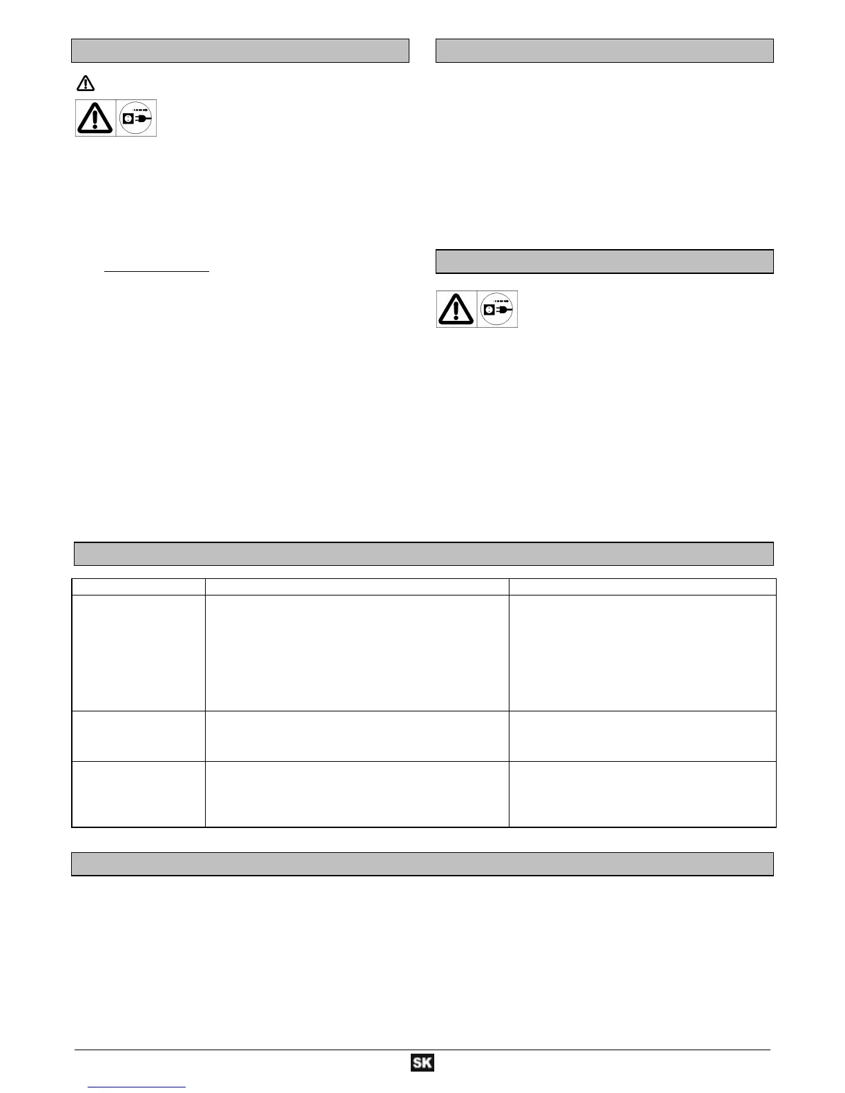 ⇒ Vypnúť stroj, odpojiť od prúdu a jednotlivé