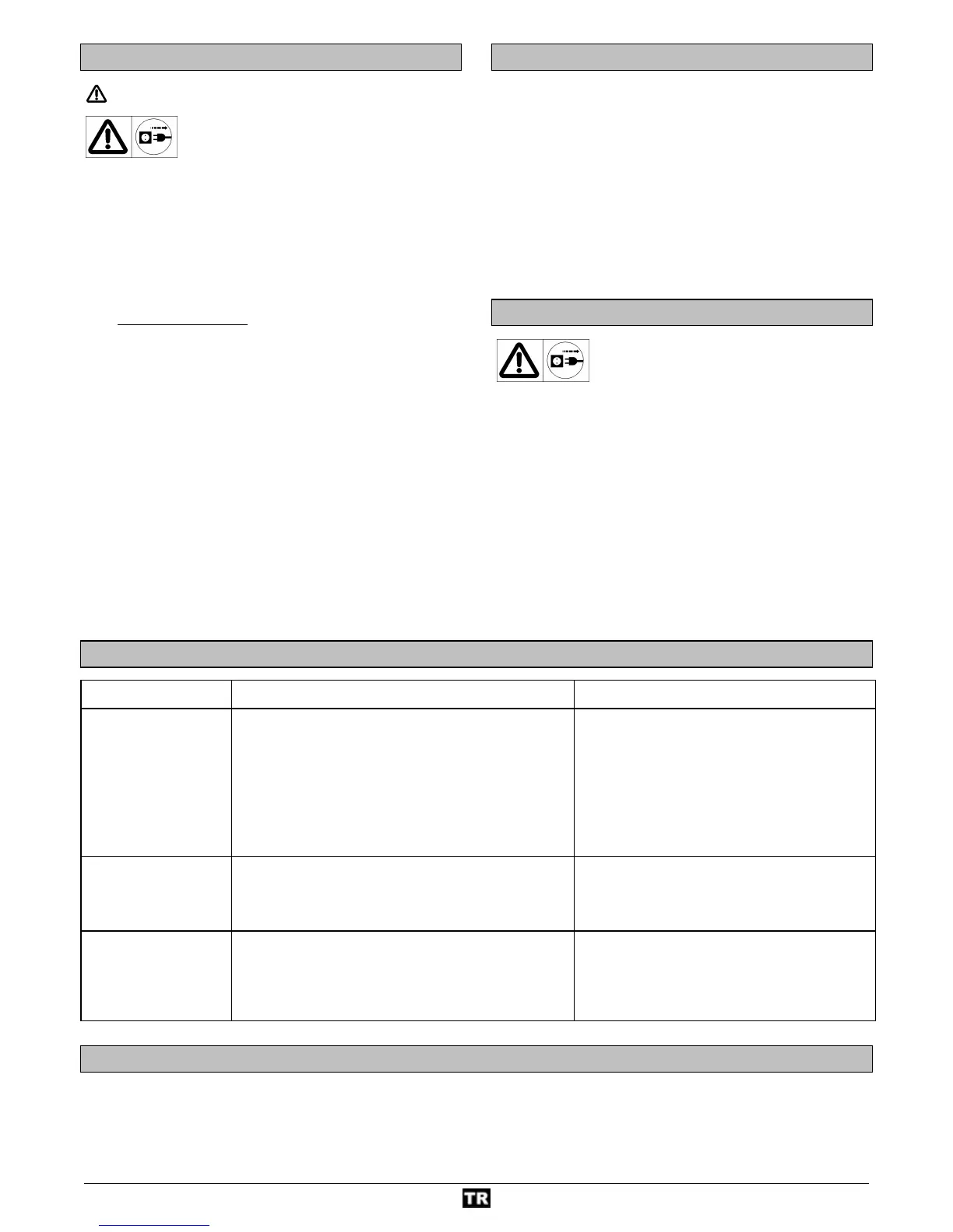 • Onarım çalışması gerekli olduğunda makineyi kapatın ve
