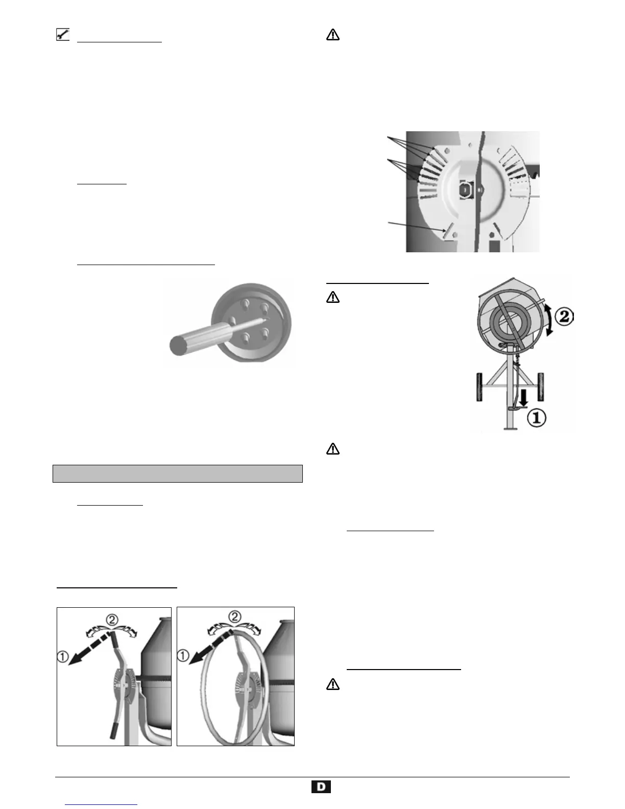 • Füllen und entleeren der Mischtrommel nur bei laufendem