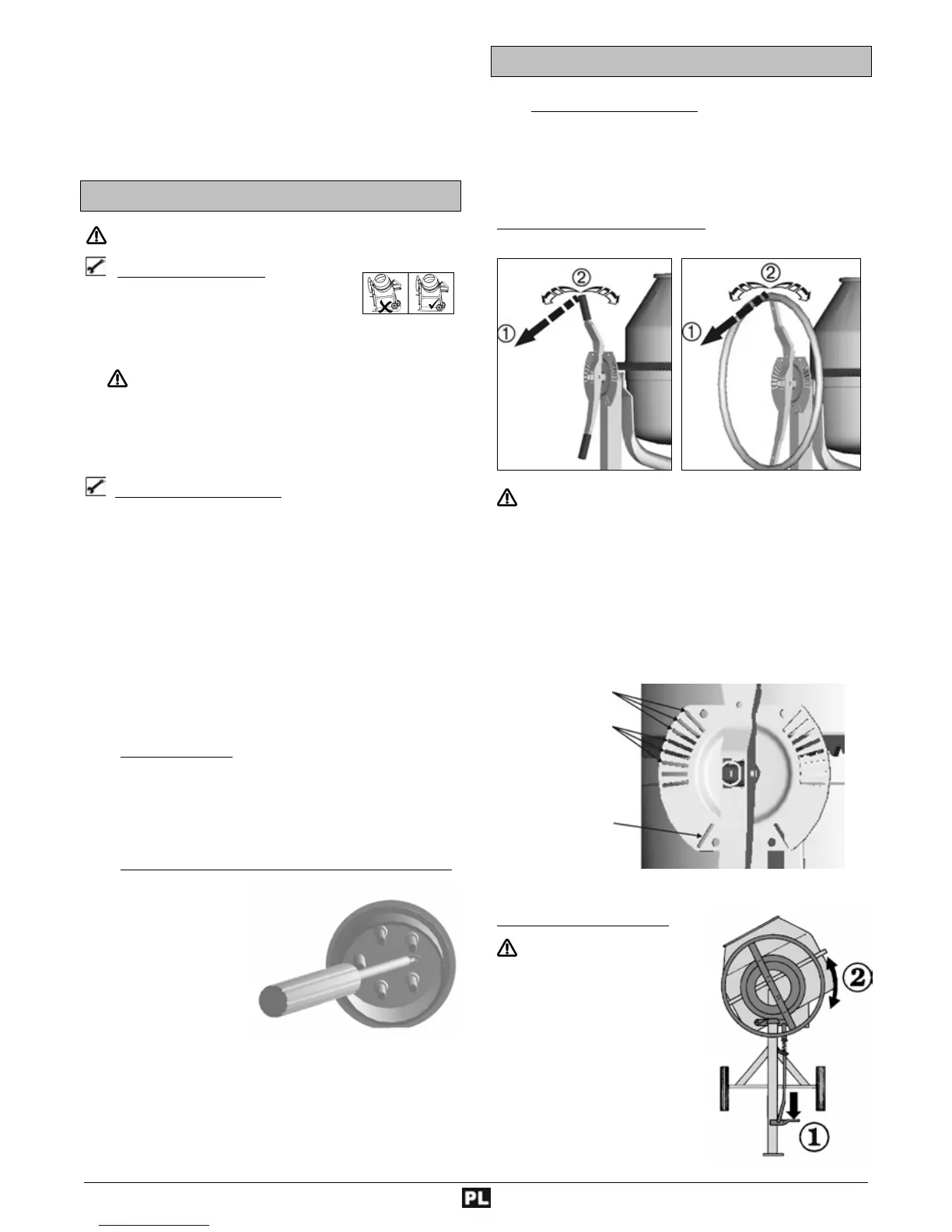 • Betoniarkę należy zawsze ustawiać i
