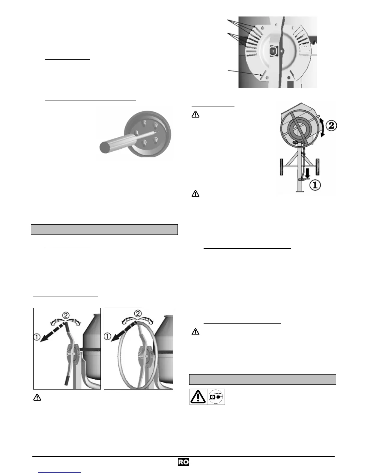• Umpleţi şi goliţi tamburul de malaxare numai cu motorul