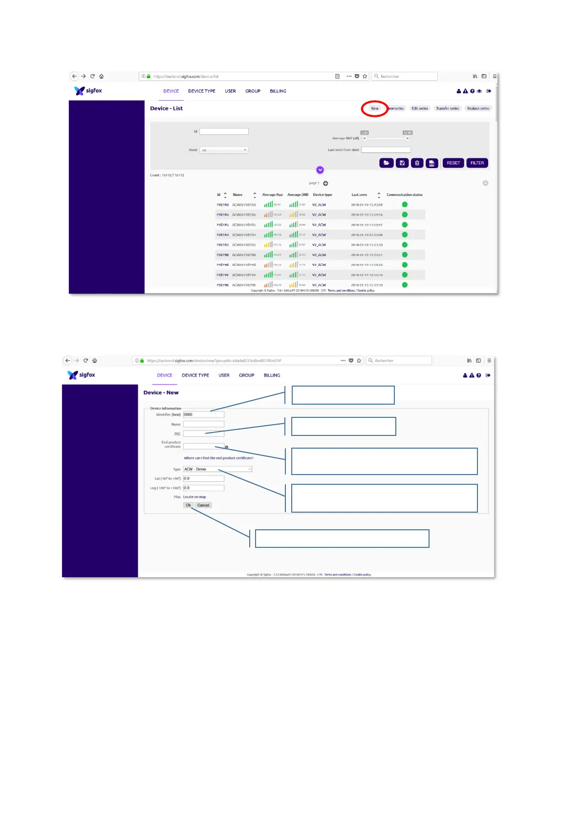 Step 4: Fill in the information of the new device you want to register on your Sigfox account: