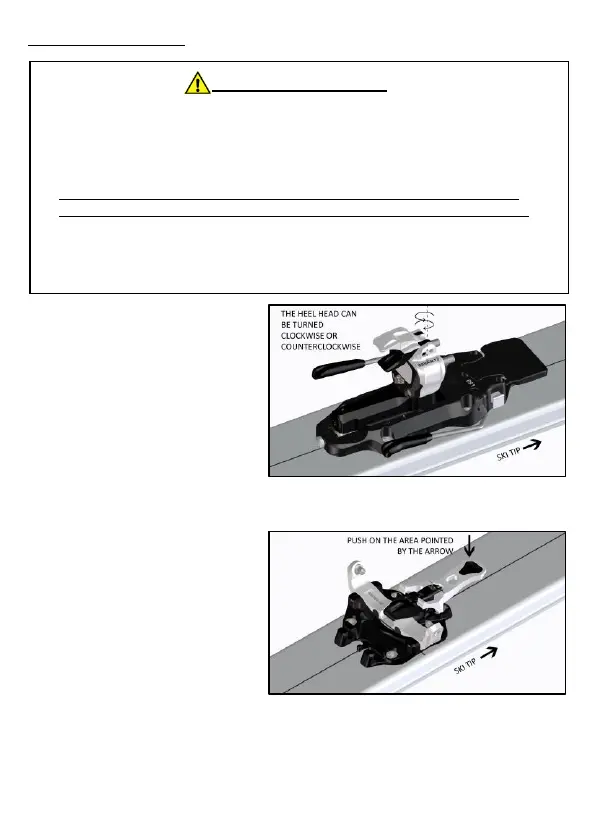 manual. This use modality may allow the release of the binding in case of ruinous falls: NEVER SKI