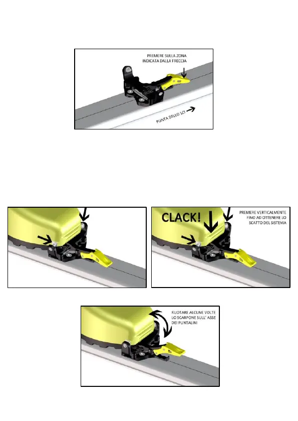 premere la punta scarpa verso il basso (verticalmente) generando lo scatto del sistema elastico che