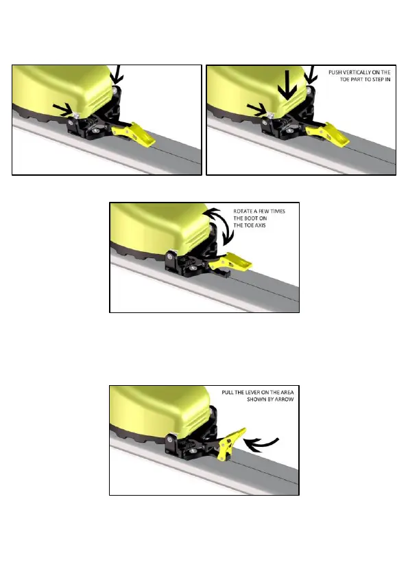 (PICTURE 13). From this position, vertically push on the toe part to step in. (PICTURE 14/15). Rotate a