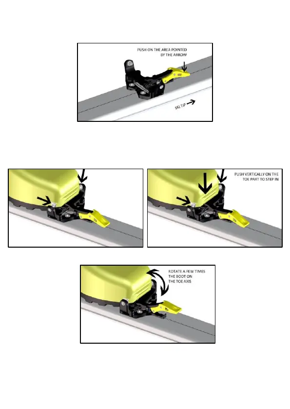 (PICTURE 20). From this position, vertically push on the toe part to step in. (PICTURE 21/22). Rotate a