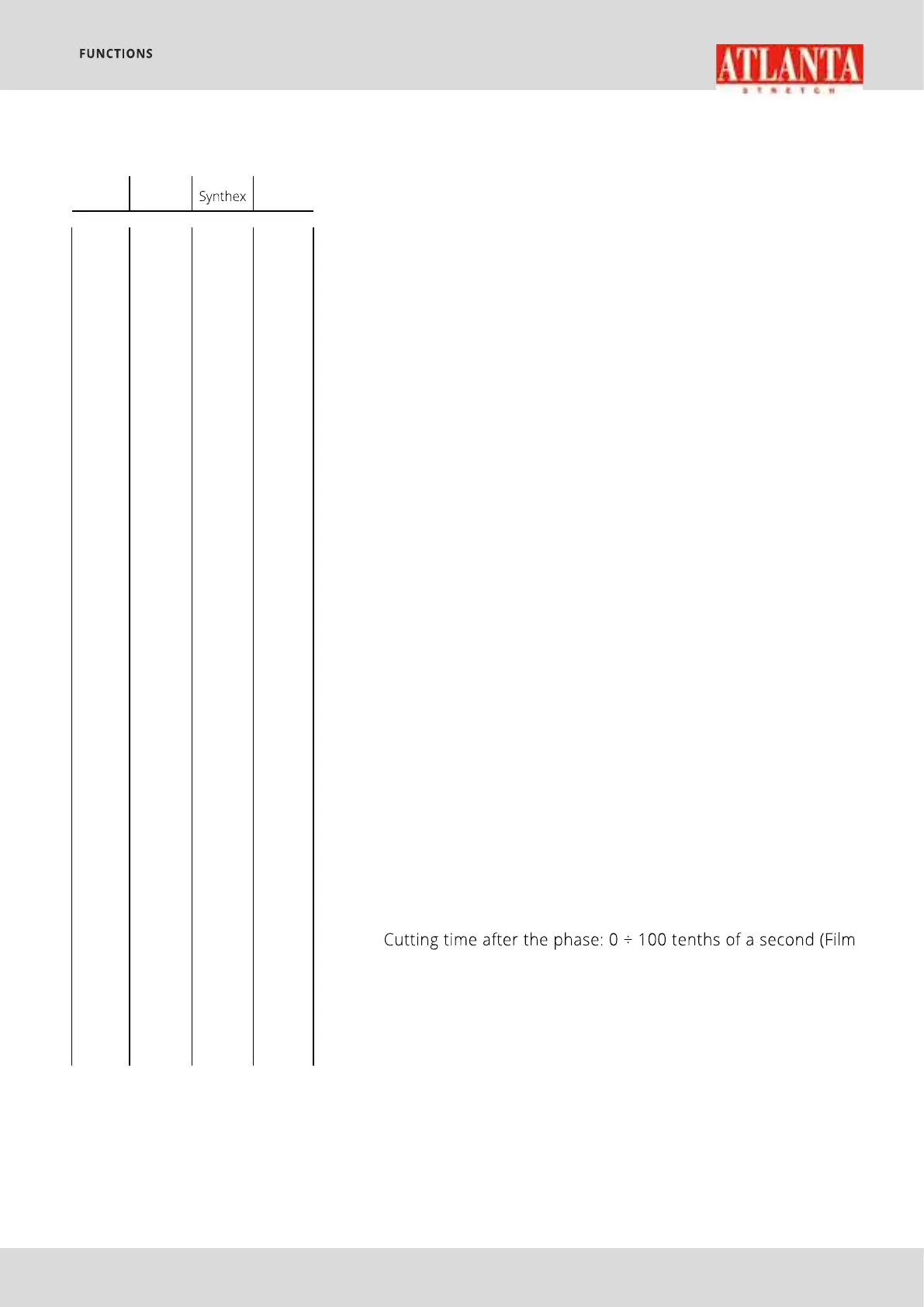 Film exit time after cutting: 0 ÷ 100 tenths of a second