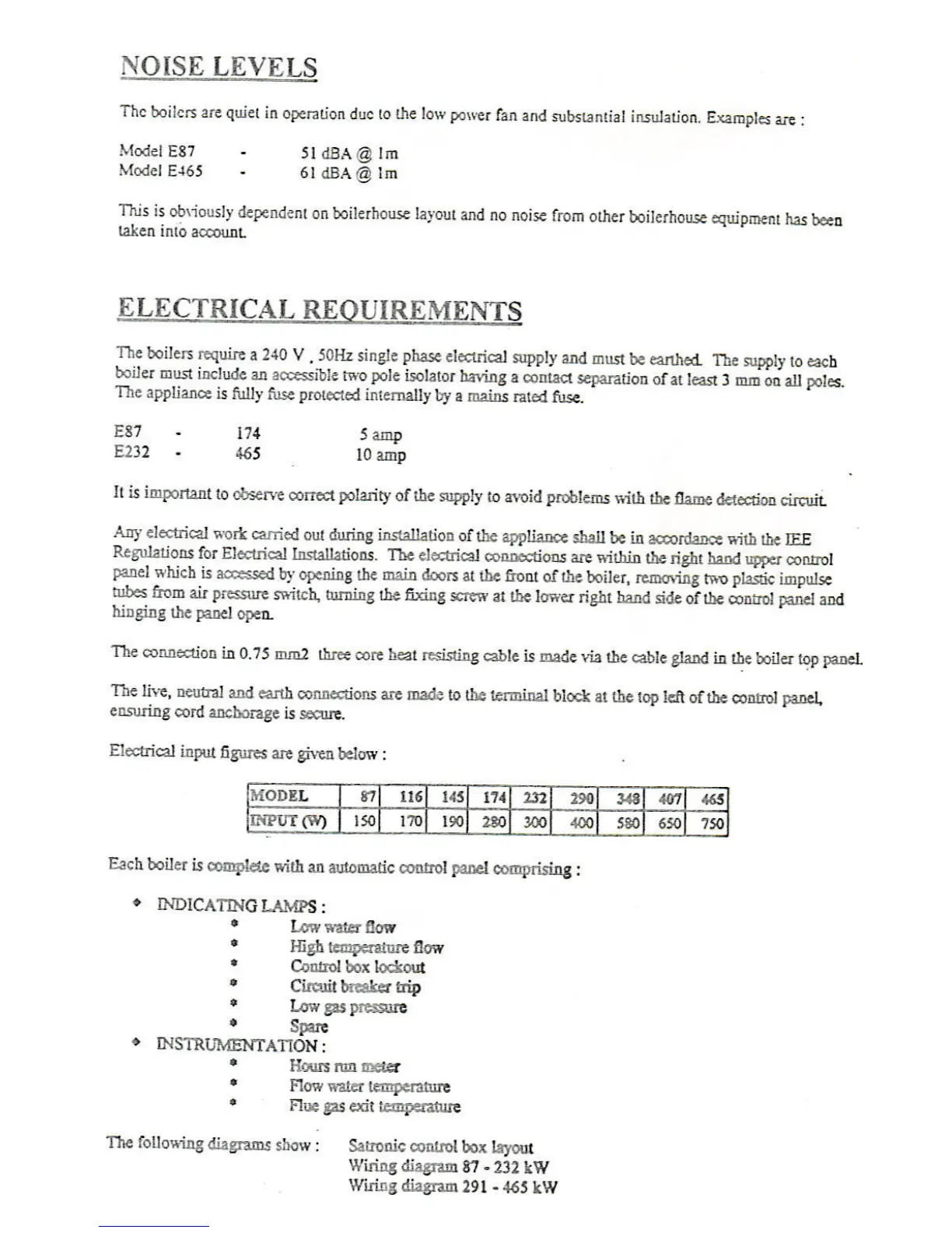 Atlantic Boilers Series E - NOISE LEVELS; ELECTRICAL REQUIREMENTS