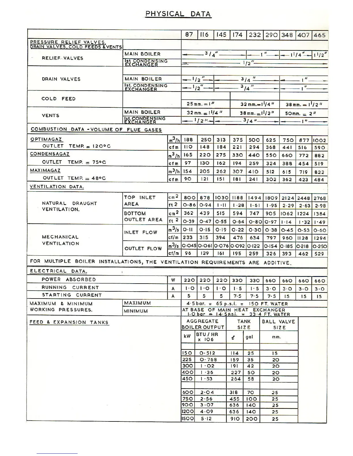 Atlantic Boilers Series E - COMBUSTION DATA-VOLUME OF FLUE GASES; VENTILATION DATA.; ELECTRICAL DATA.