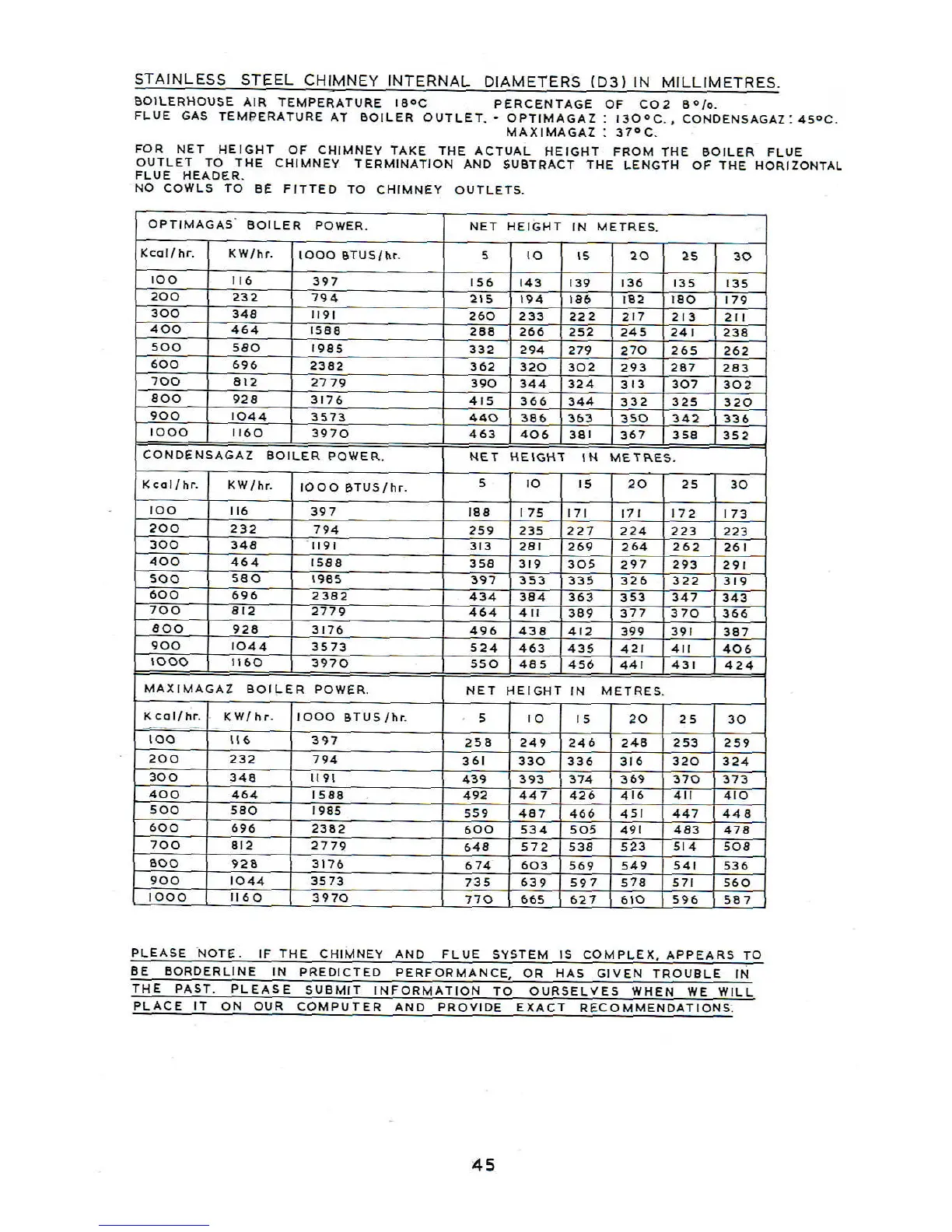 Atlantic Boilers Series E - STAINLESS STEEL CHIMNEY INTERNAL DIAMETERS
