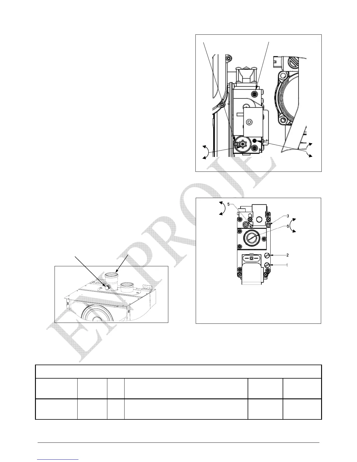 Adjust the gas valve screw to a setting within the table below