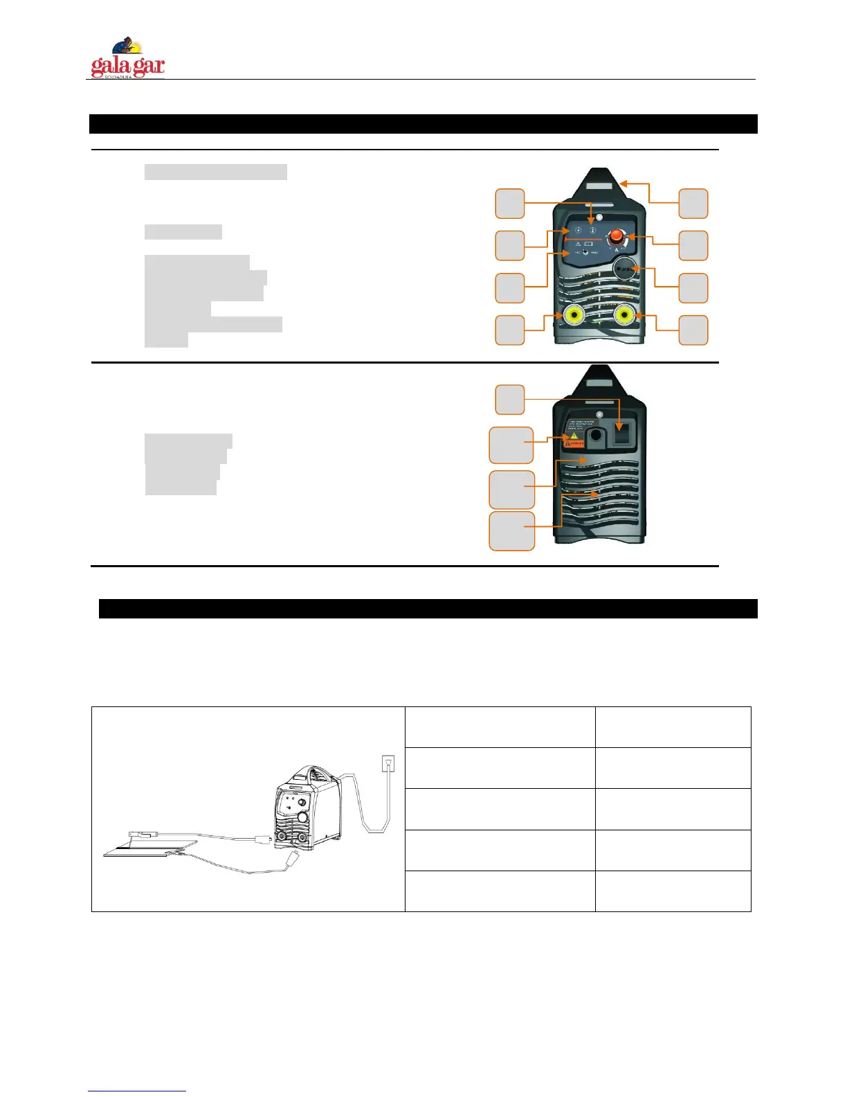 4. "+" output terminal: To connect the electrode holder.