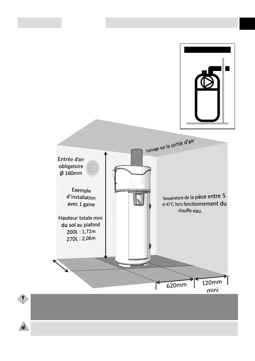 Respecter un espace de 500mm en face de l’équipement électrique et de 300mm en face de