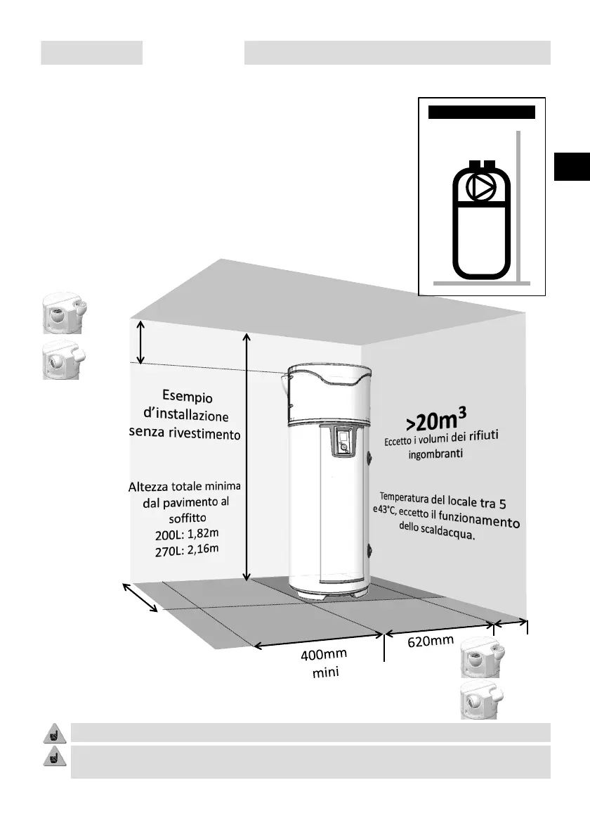 9 Locale consigliato = interrato o seminterrato, locale in cui la temperatura è