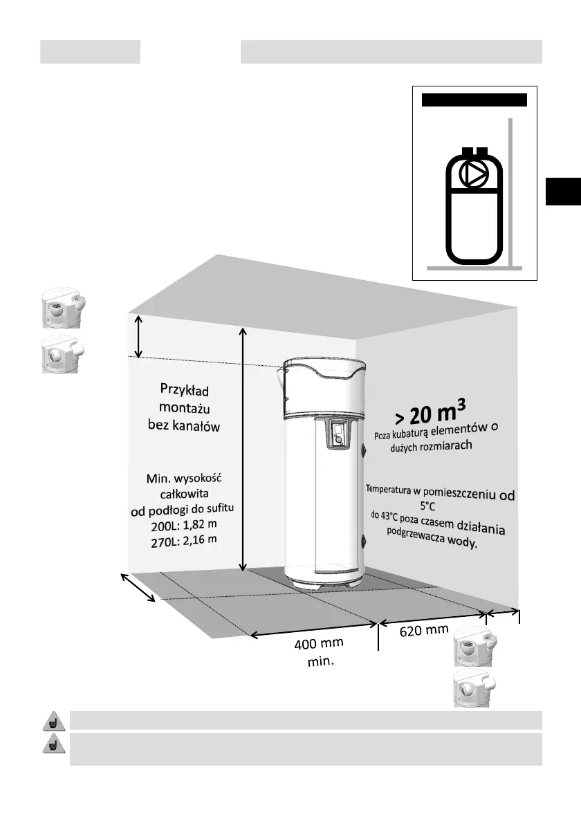 Aby umożliwić dostęp do podgrzewacza na potrzeby przeglądów okresowych, pozostawić odstęp