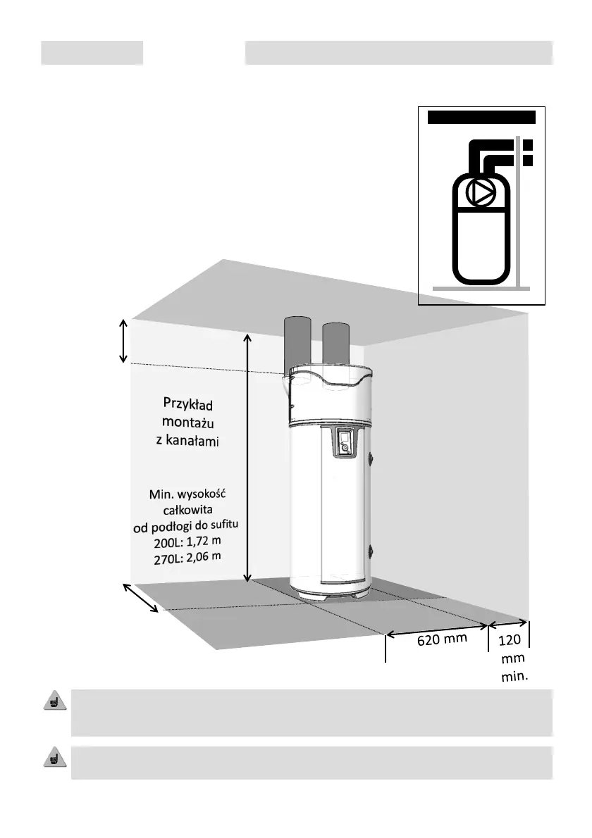 Aby umożliwić dostęp do podgrzewacza na potrzeby przeglądów okresowych, pozostawić odstęp