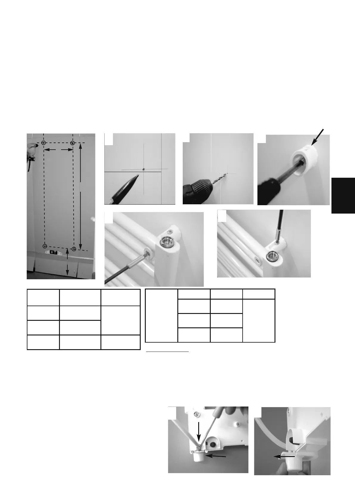 6/ Het apparaat aan de muur zetten. Elke schroef van blokkage schroeven. De capuchons in einde van