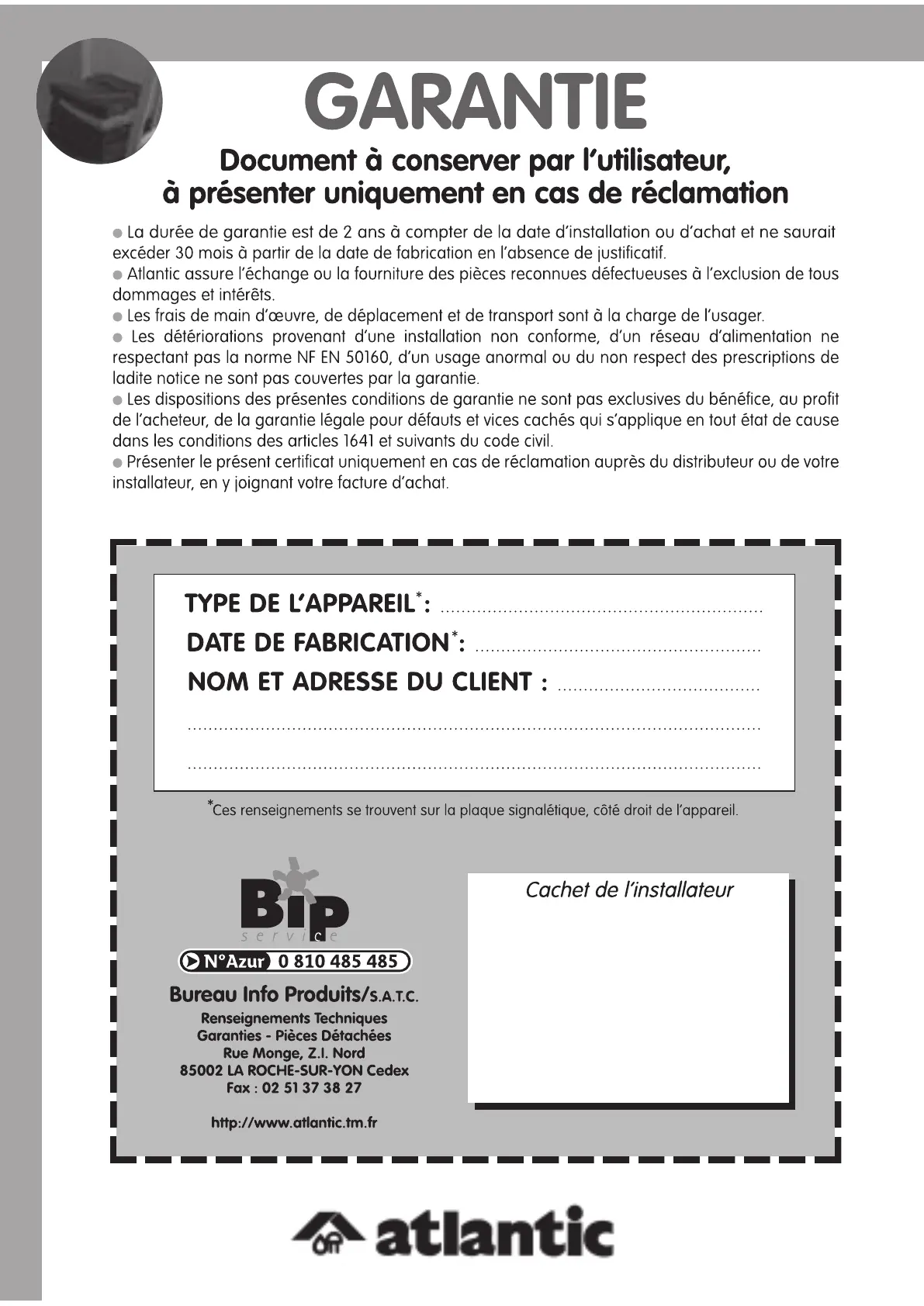 Other manuals for Atlantic 2012