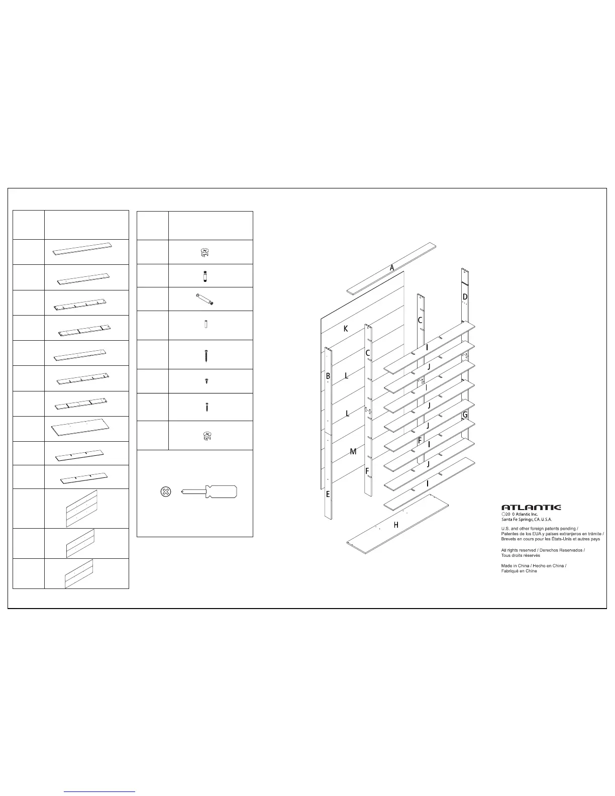 Atlantic 35435725 - Media Tower Elite Assembly; Parts and Tools List