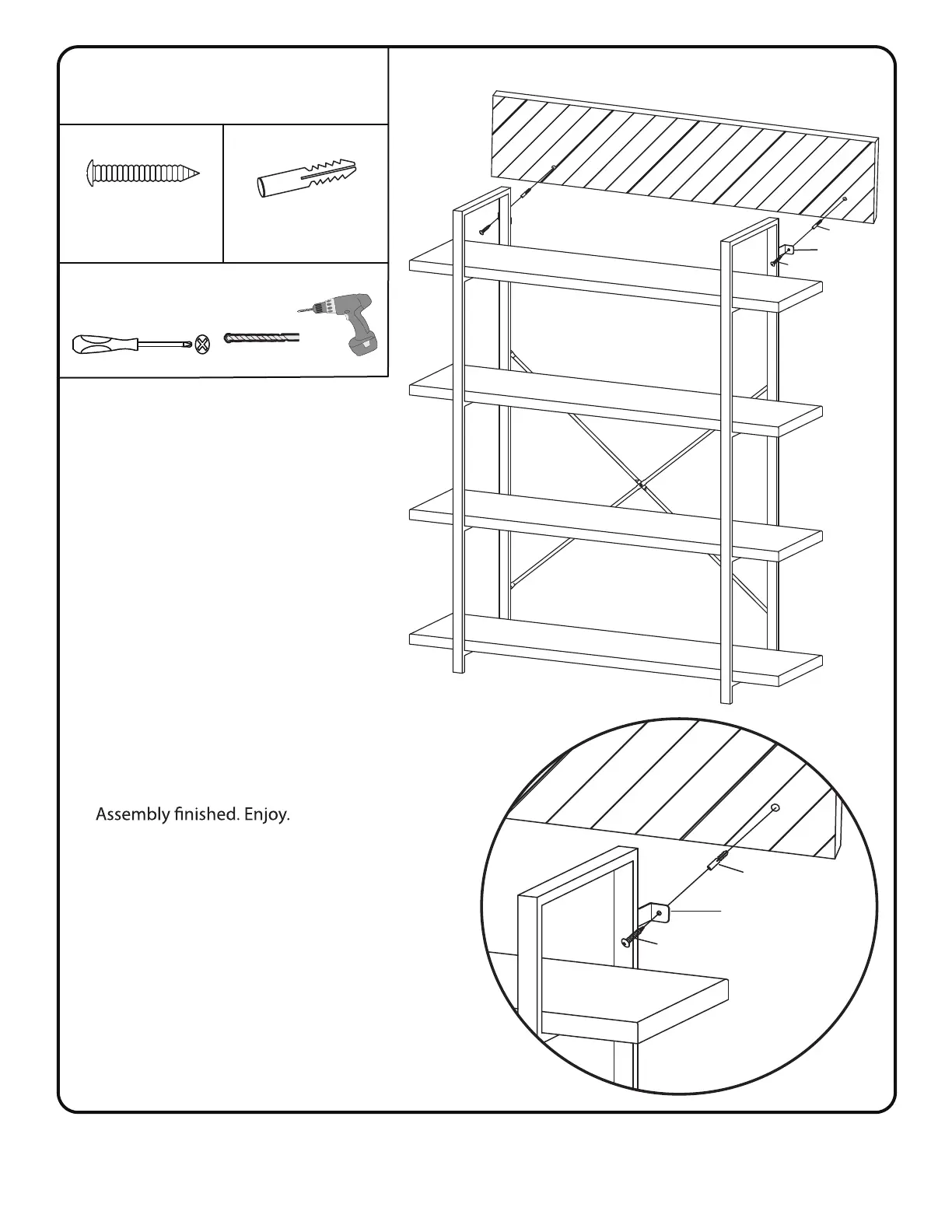 Attach Shelving unit to wall. Drill two holes into