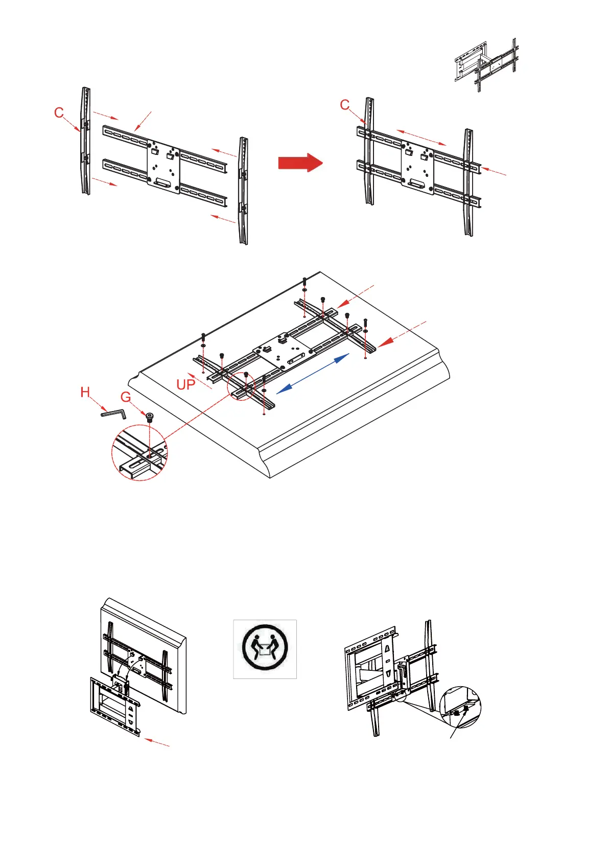 Slide TV mounts(C) along with TV horizontal bar(D). See Figure 1