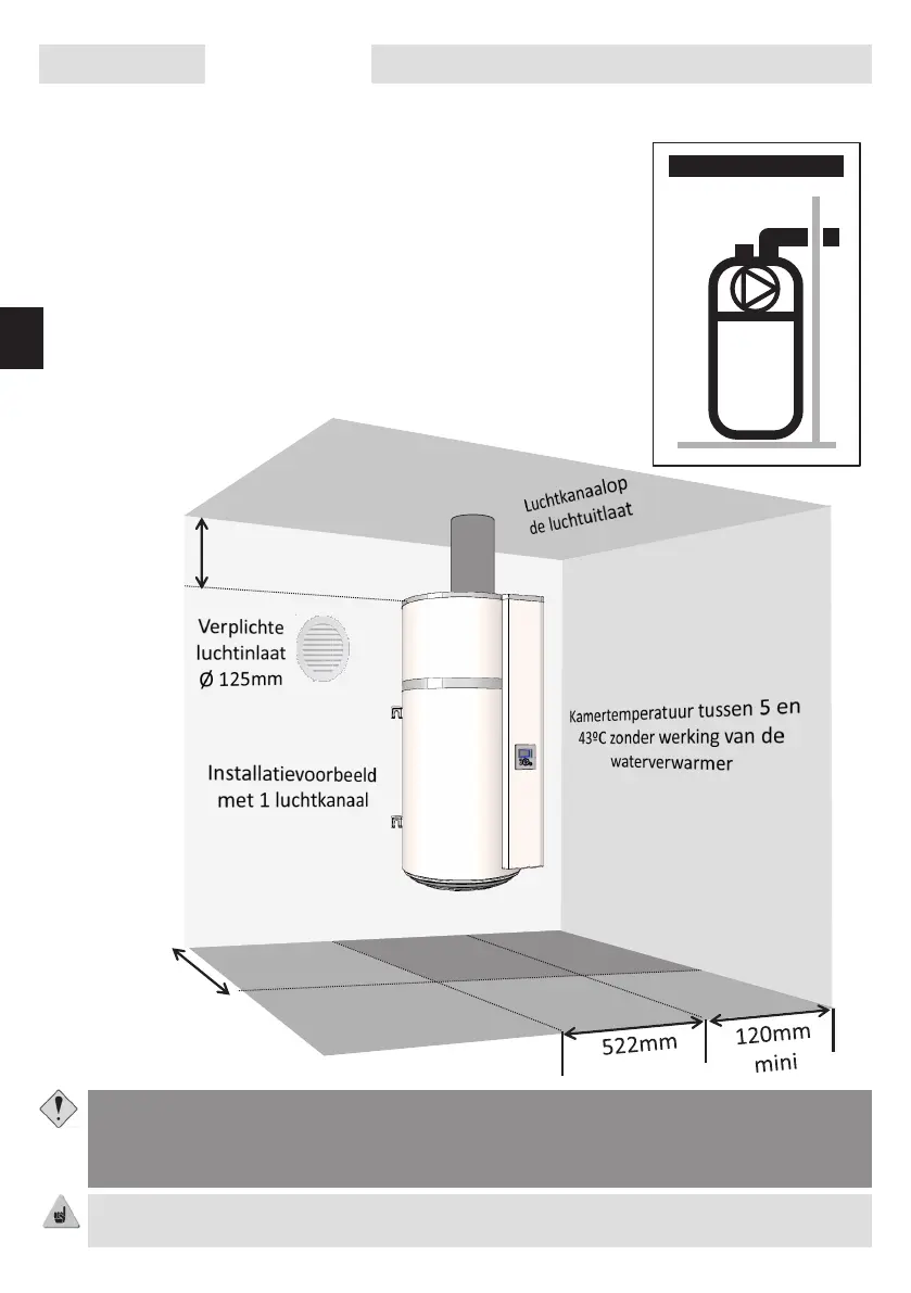 Respecteer een ruimte van 450 mm voor de elektrische apparatuur om de waterverwarmer