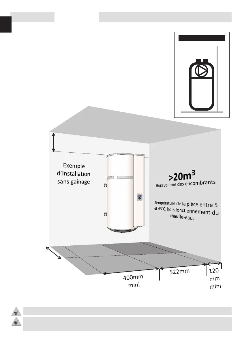 Respecter les espacements minimum indiqués pour éviter une recirculation de l’air.
