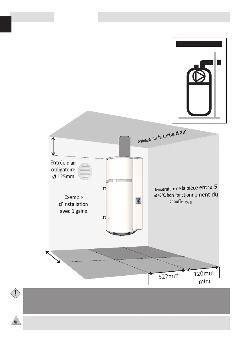 Respecter un espace de 450mm en dessous du chauffe eau afin de laisser l’appoint électrique