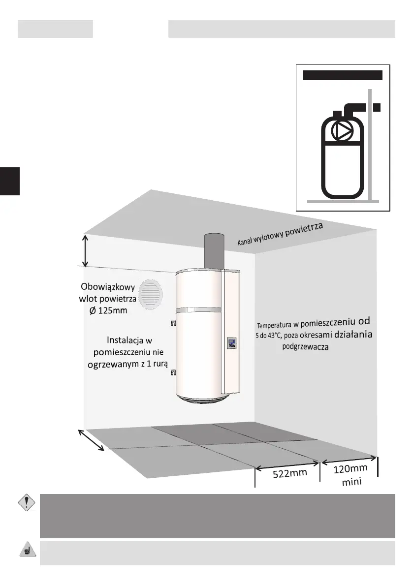 Aby umożliwić dostęp do podgrzewacza na potrzeby przeglądów okresowych, pozostawić odstęp