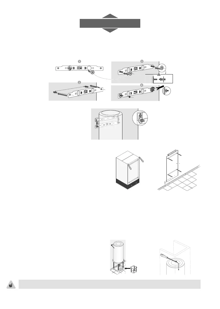 Forare e assemblare lo scaldacqua utilizzando ssaggi del diametro di (Ø) 10 mm min.,