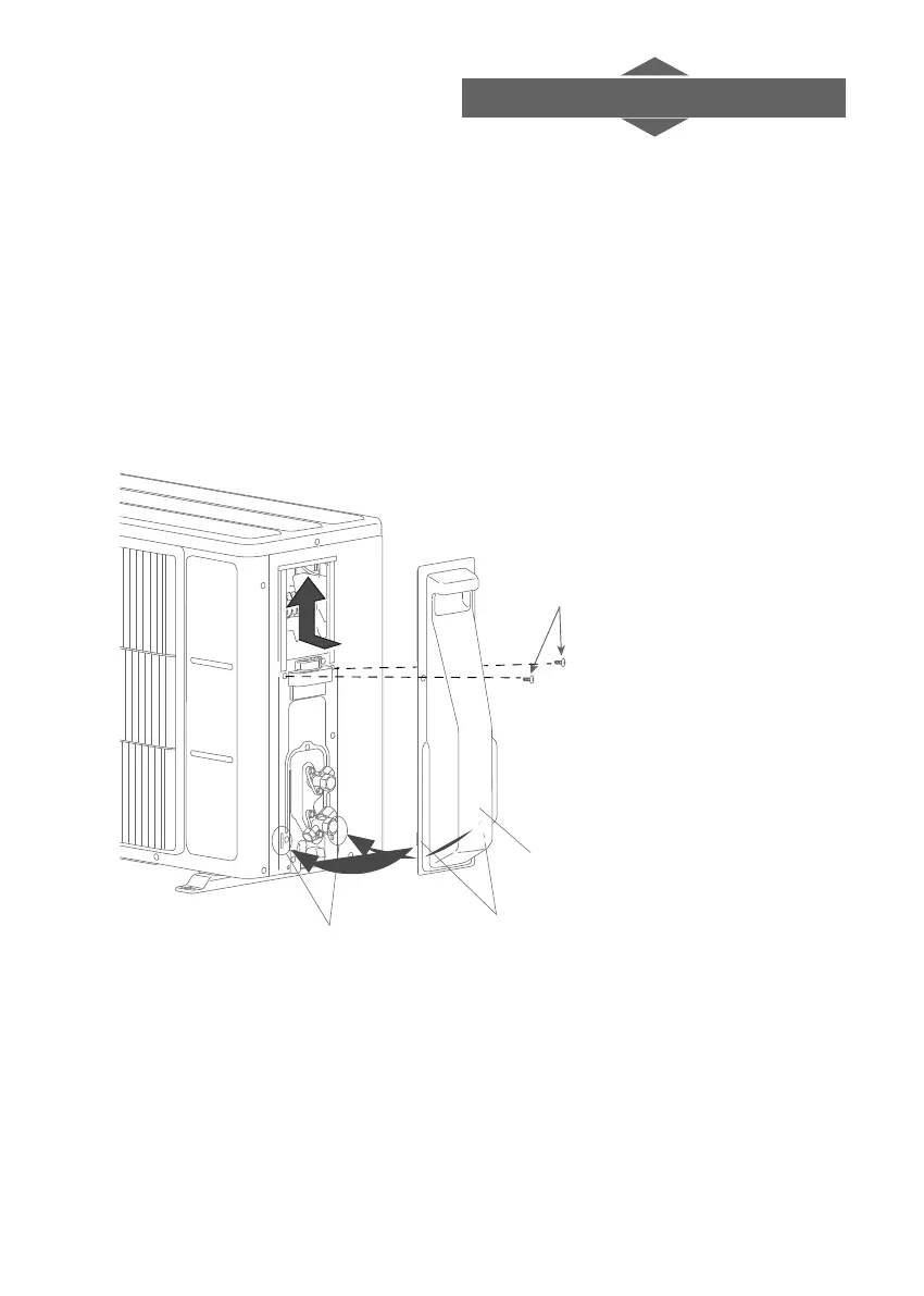 1. Après avoir inséré les encoches du cache vanne sur l’unité extérieure, faire glisser