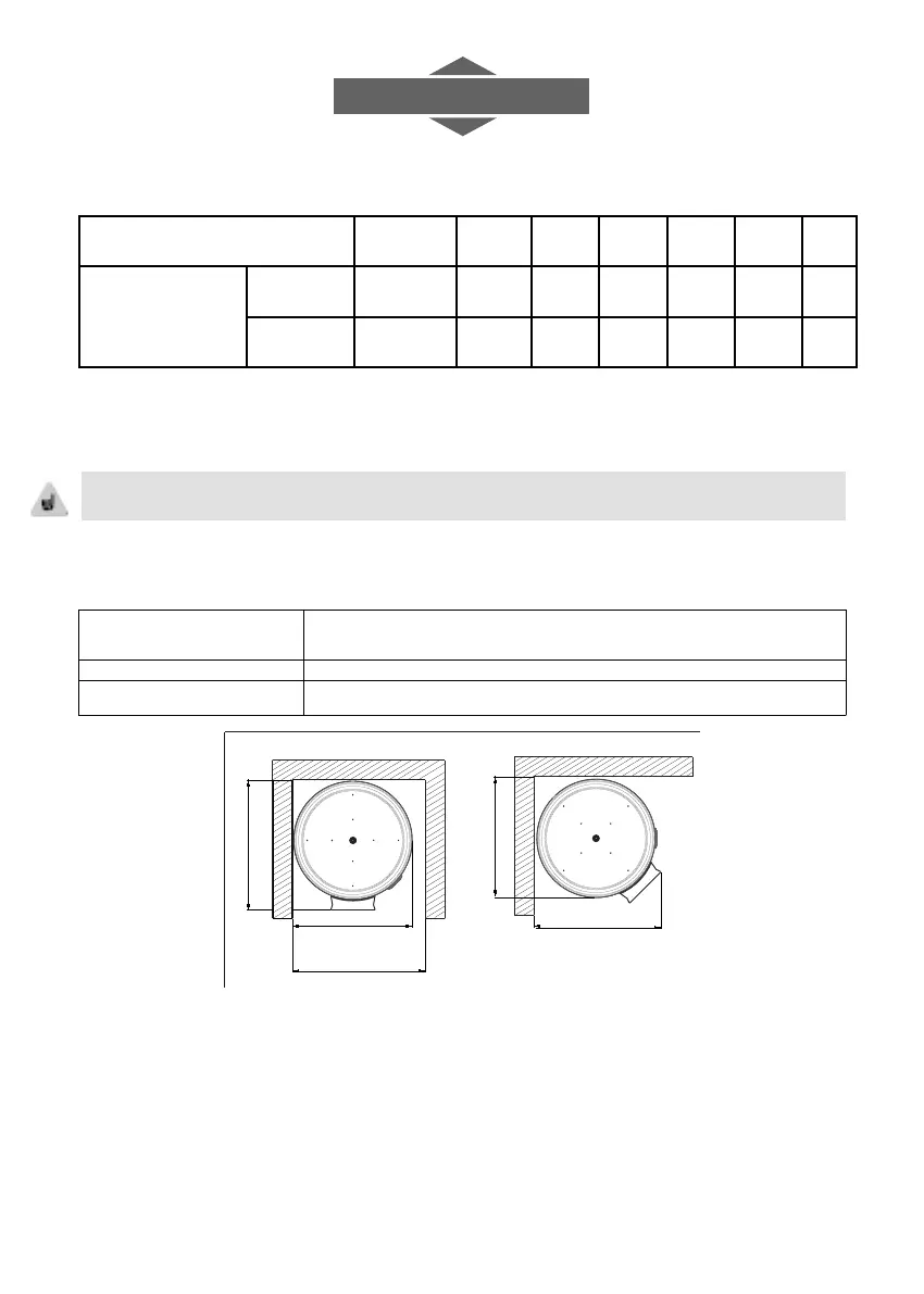 de la surface de la pièce dans laquelle est installé le produit. Voir tableau ci-dessous.