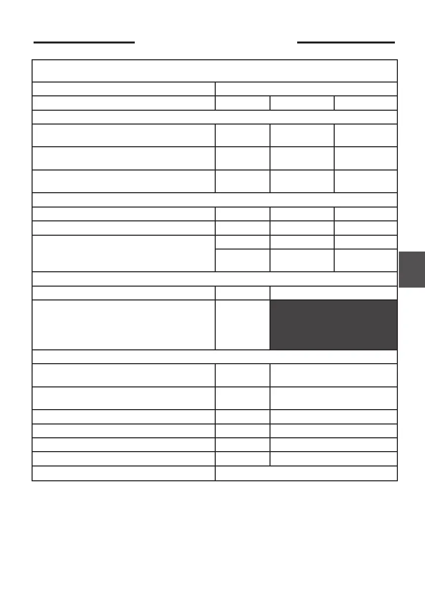Technical characteristics measured and calculated according to