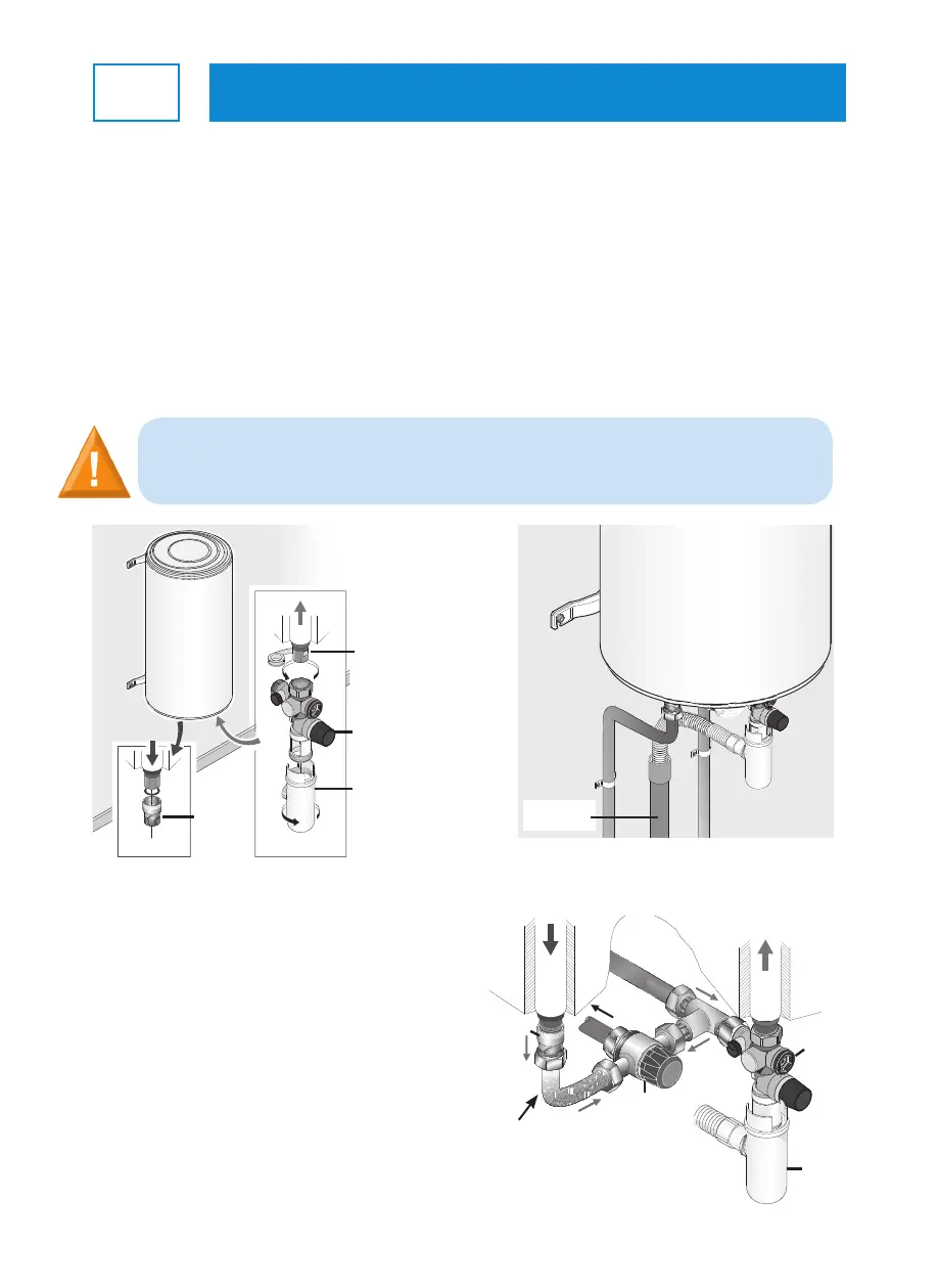 Place the siphon under the safety unit and connect its drain pipe to the drain.