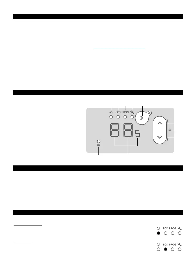 When device is switched on for the first time, the operating mode is Comfort (by default,