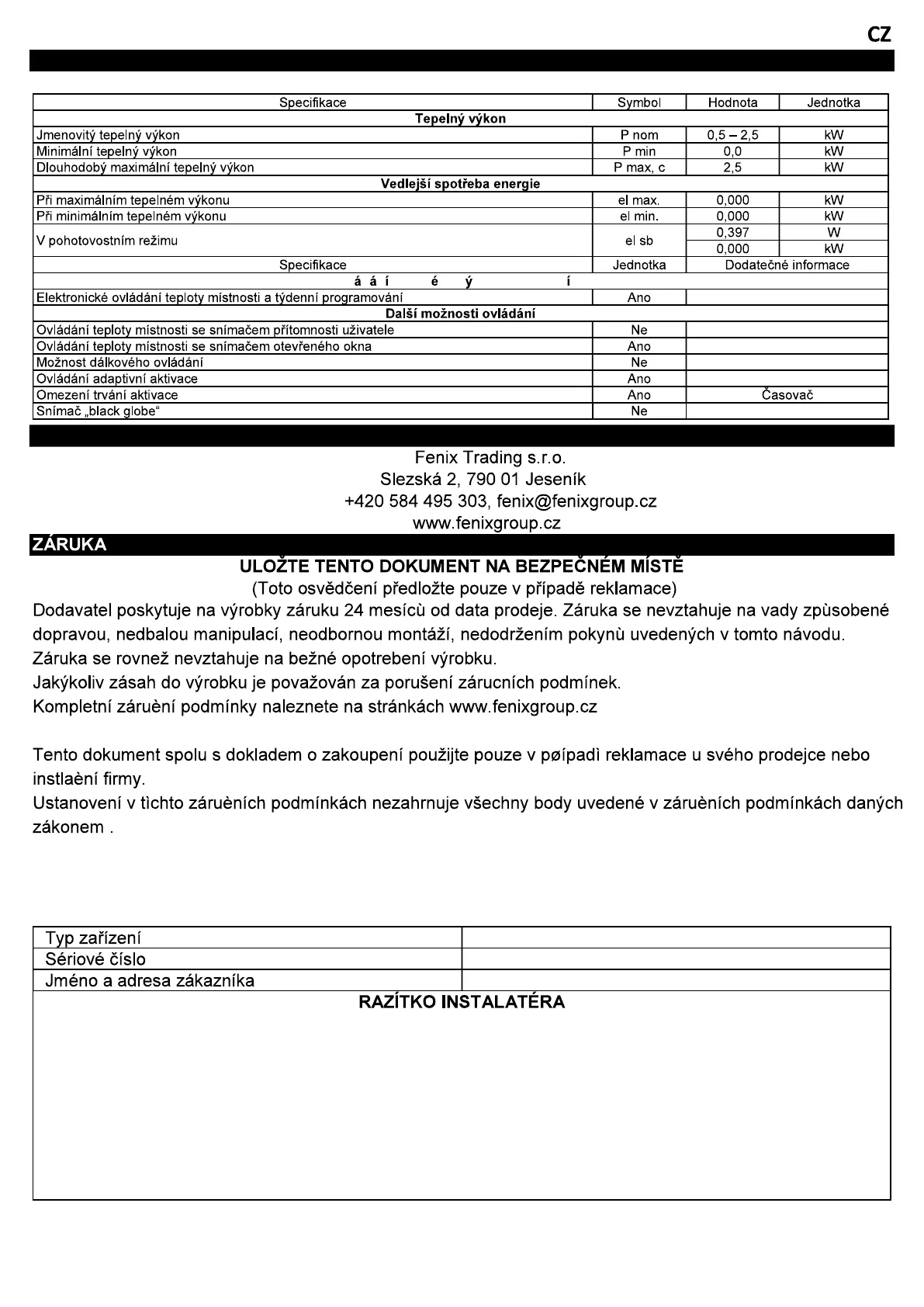 SPECIFIKACE MODELU
