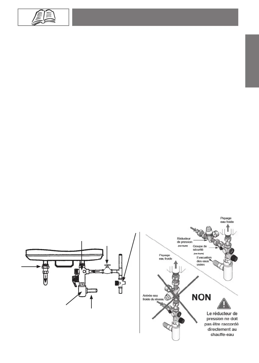 • Installerobligatoirementunorganedesécuriténeuf(nonfourni)surl’entréeduchauffe-eau,quirespectera