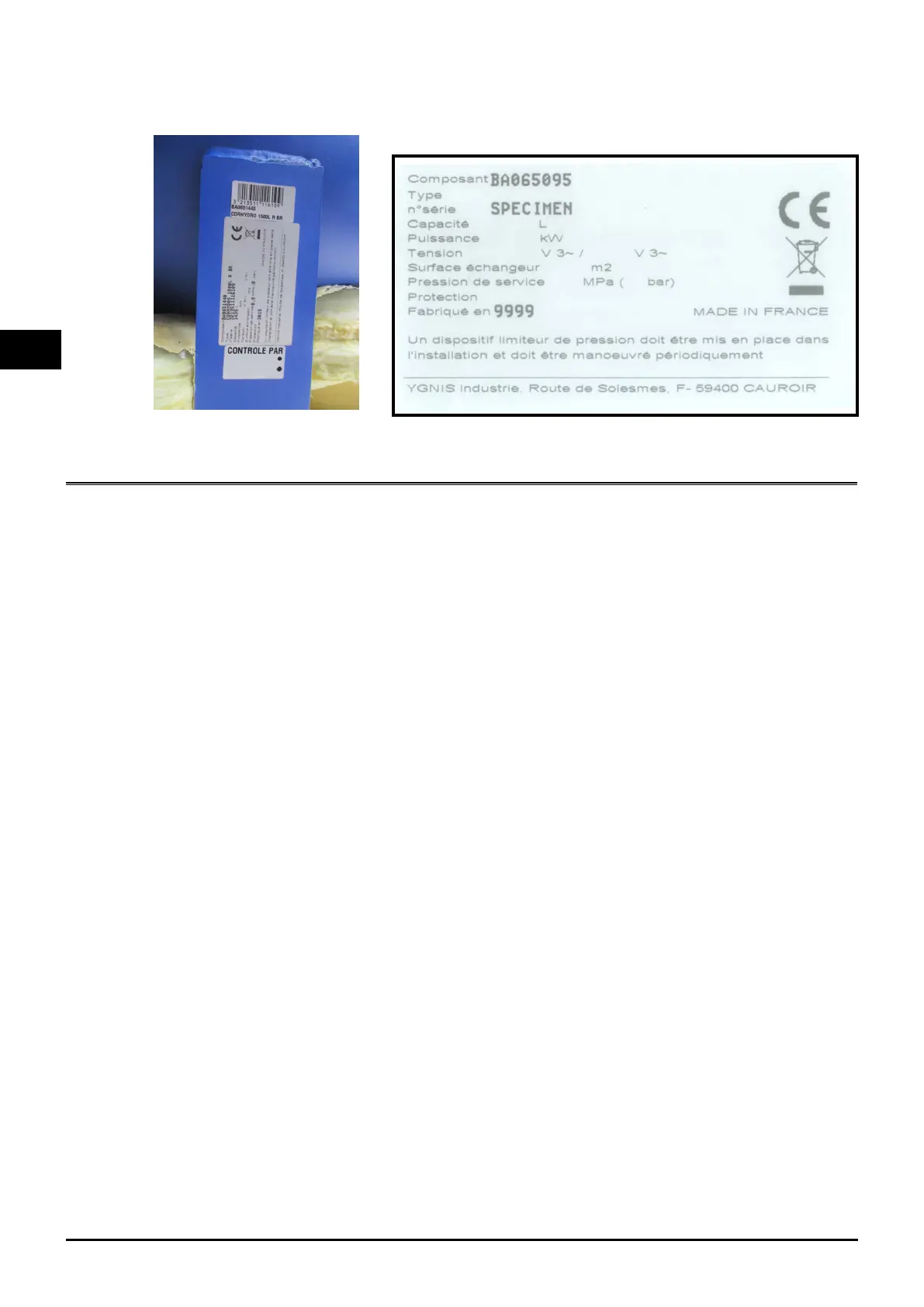 Sulla base del boiler nell'asse del termometro e sulla camicia si trova una targhetta segnaletica