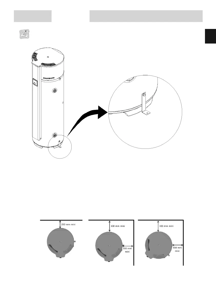 The water heater must be secured to the floor using the mounting bracket provided for this purpose