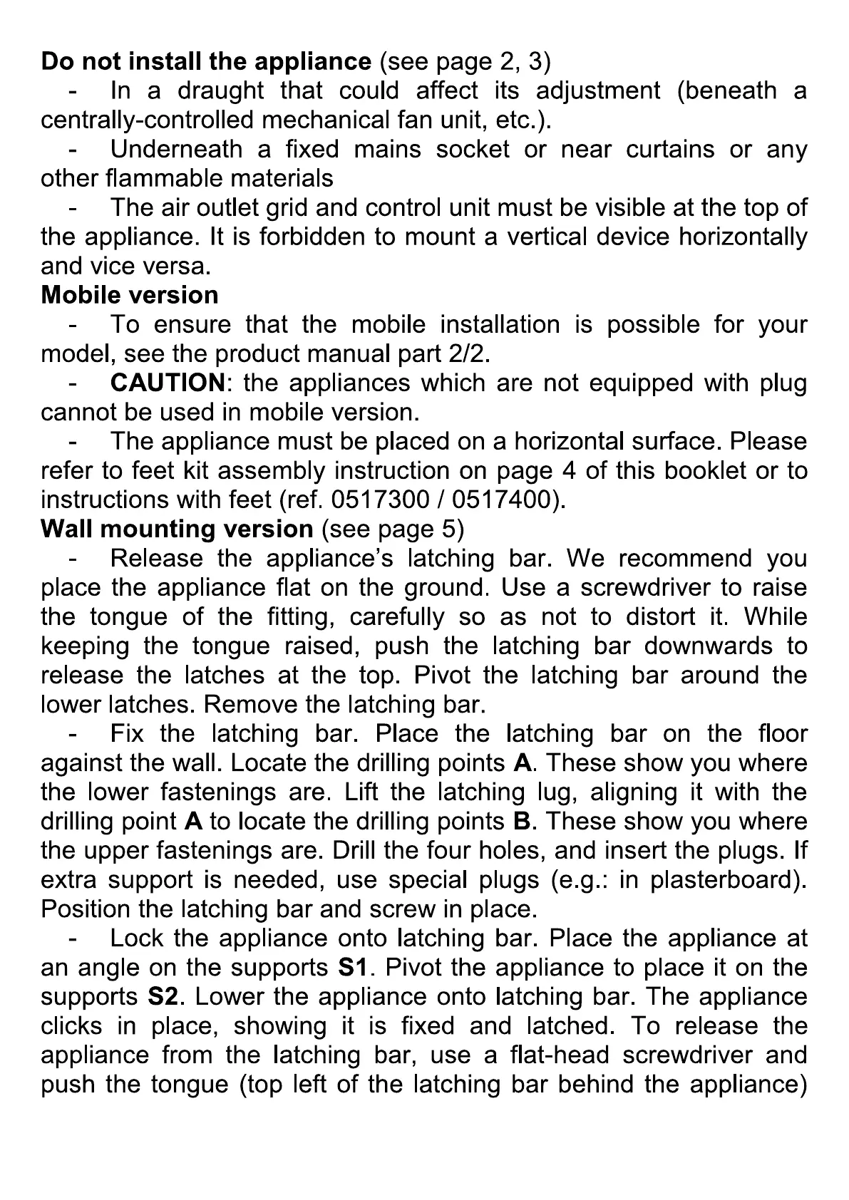 Atlantic F125 DESIGN - Prohibited Installation Locations and Mobile Use; Wall Mounting Procedure