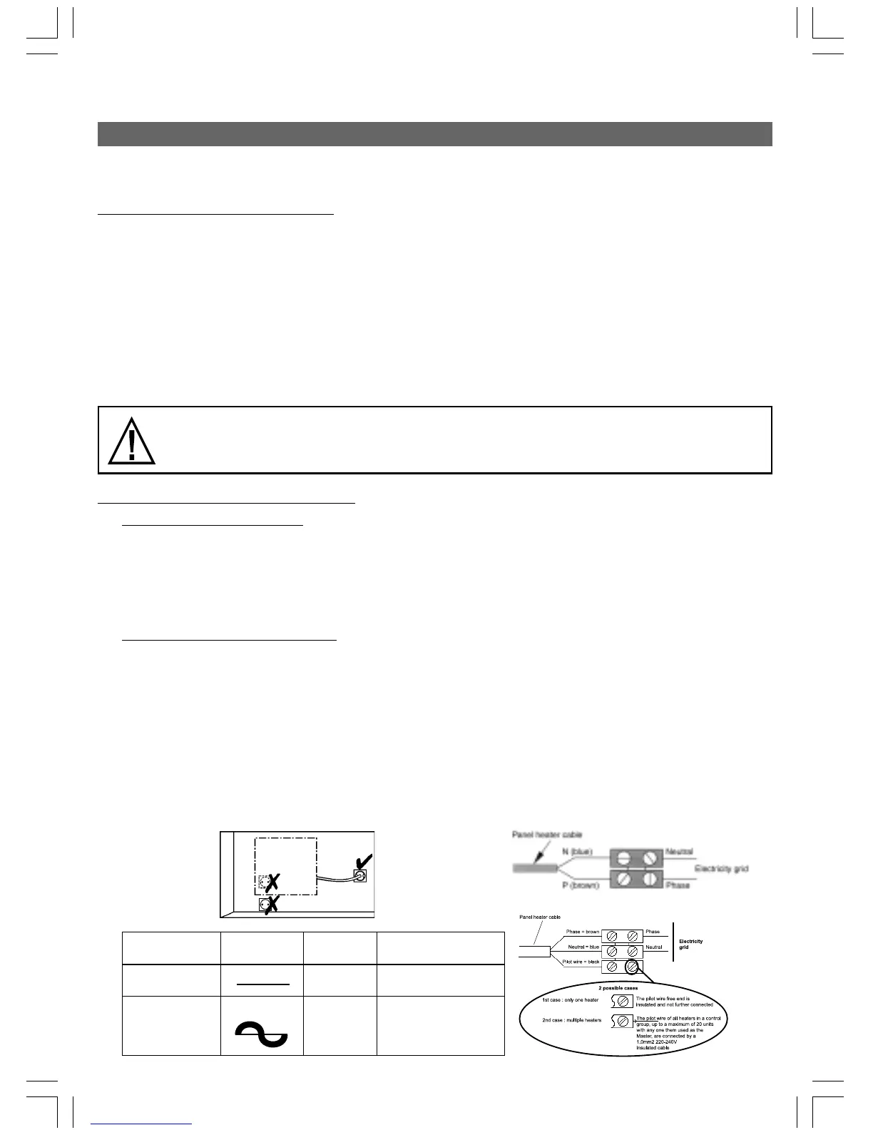 = Phase, Blue = Neutral, Black = Pilot wire) by means of a connexion box (version with pilote wire : diagram C).