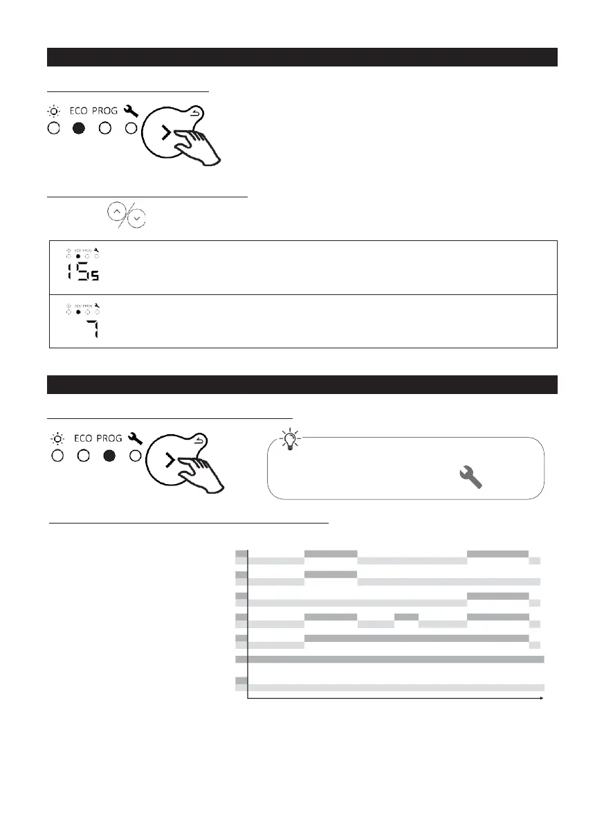 Increase or decrease from 10°C min. to 19°C max., in 0.5°C steps.