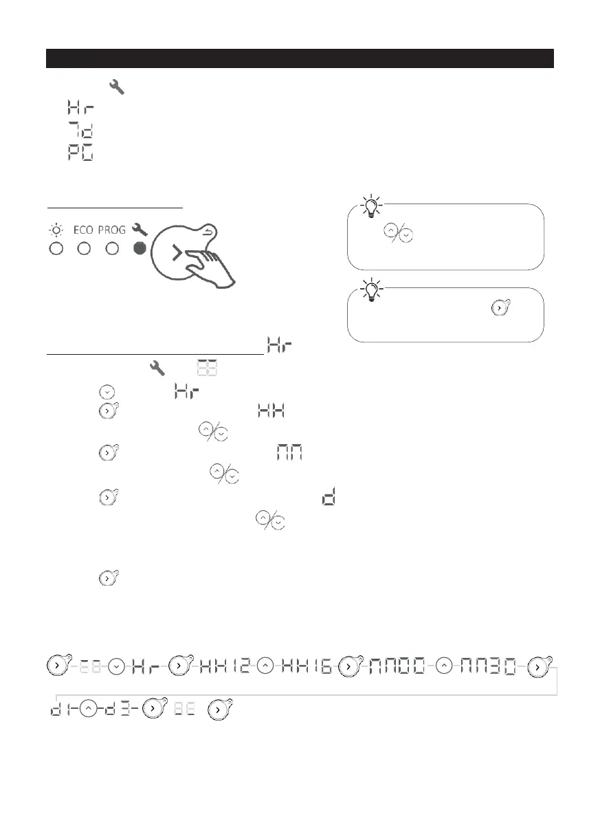 3 - Press to display the time. The symbol will flash alternately with the hours.