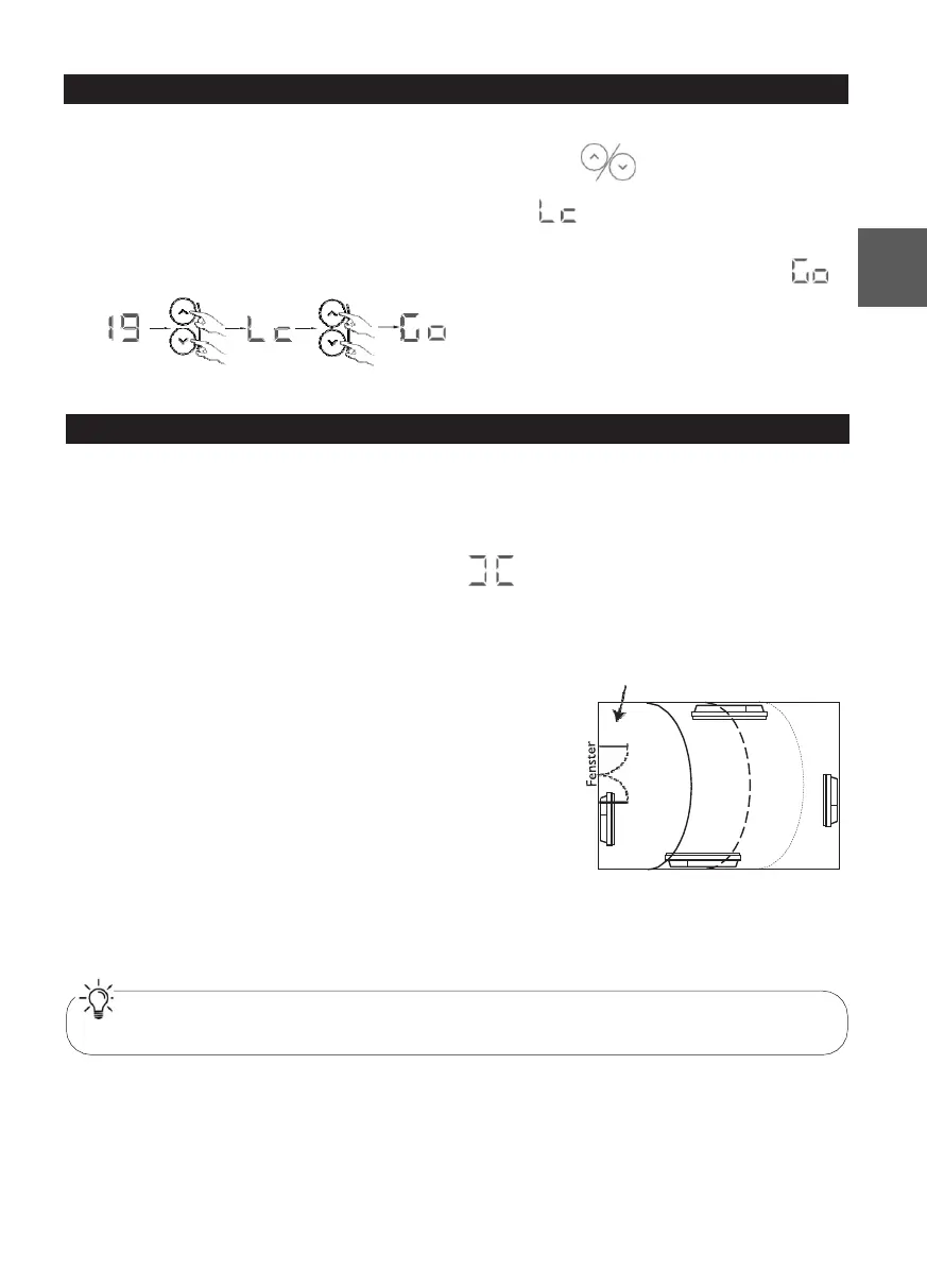 Bei Erkennung eines offenen Fensters wird angezeigt und blinkt und das Gerät