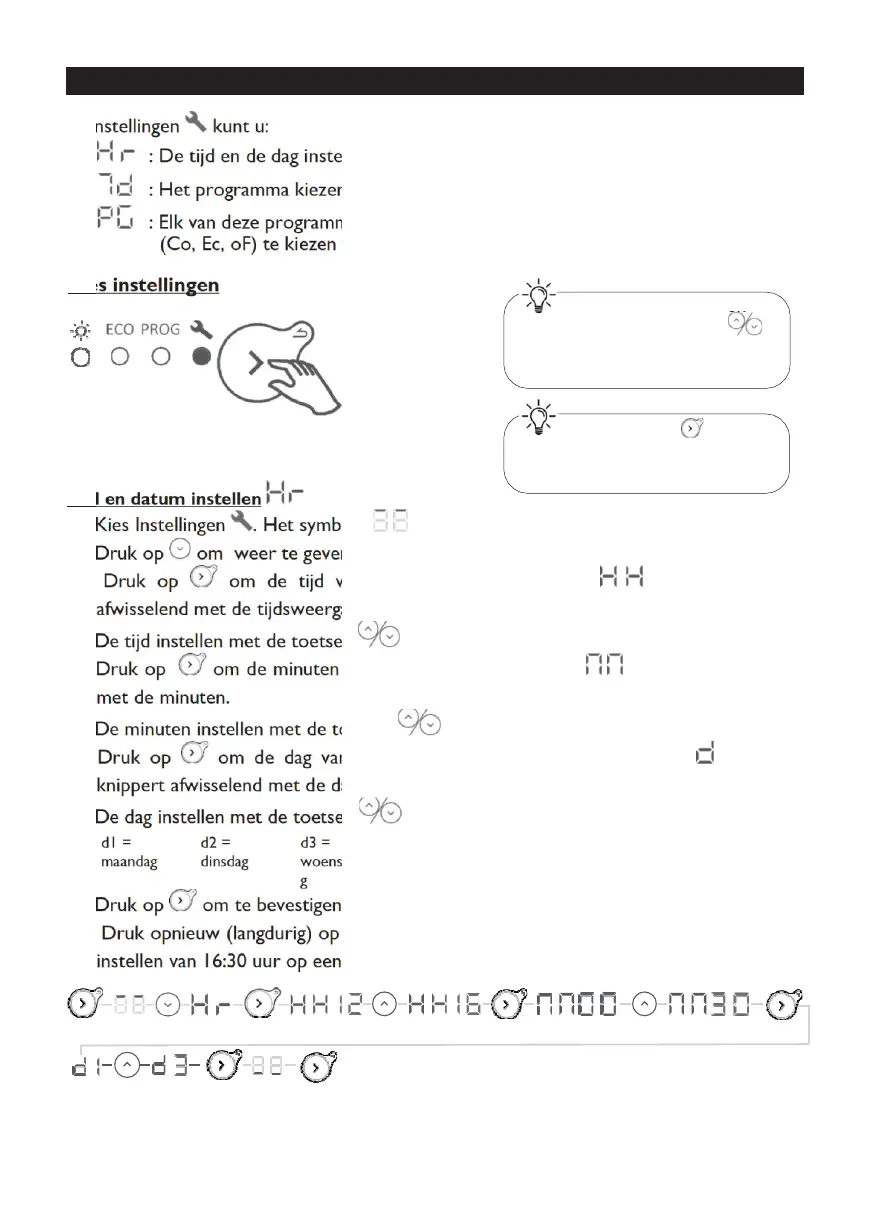• : Het programma kiezen (P1 tot P7) voor elke weekdag (d1 tot d7);