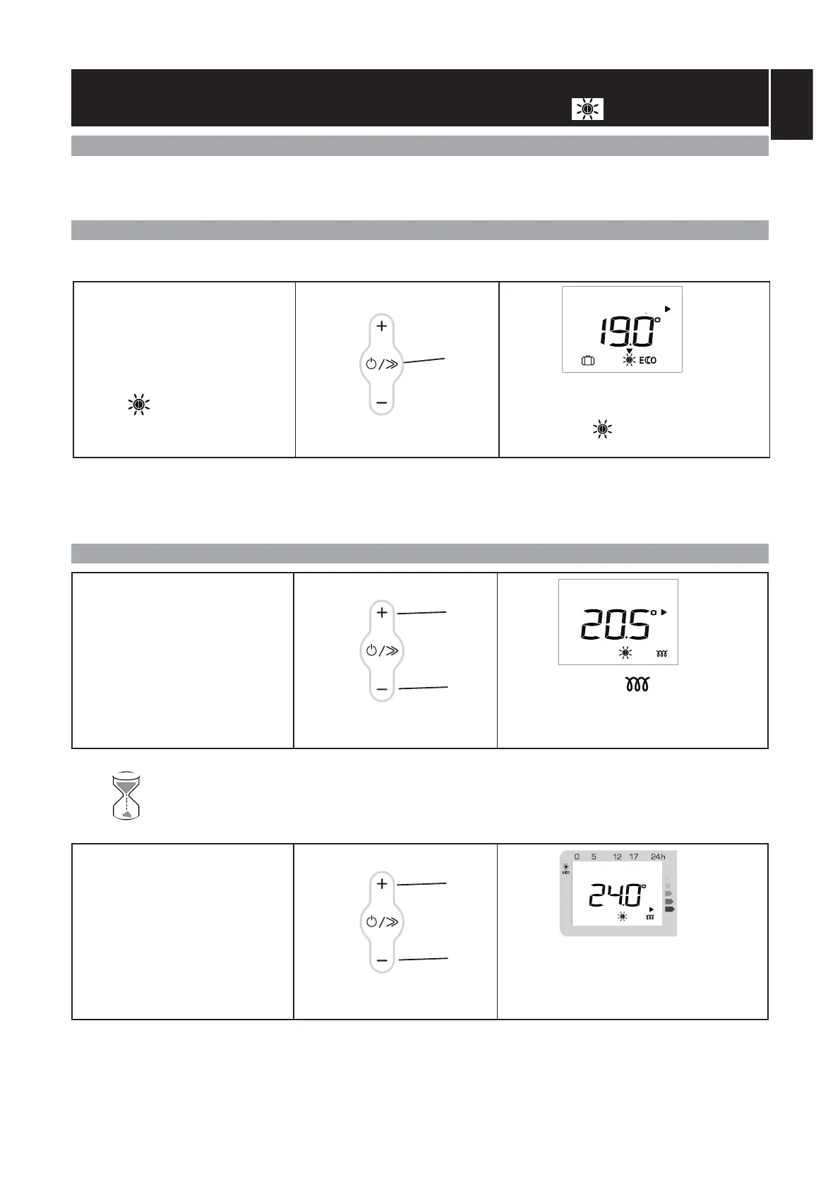 Ce mode vous permet d’avoir la température ambiante souhaitée dans la pièce. Les voyants de l’indicateur de consom-